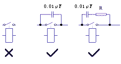 (2)在继电器接点两端并接火花抑制电路,减小电火花影响,见图2。