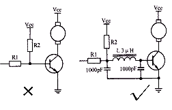 (3)给电机加滤波电路,注意电容、电感引线要尽量短,见图3。