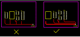 (2)布线时,电源线和地线要尽量粗。除减小压降外,更重要的是降低耦合噪声。