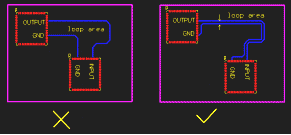 (1)布线时尽量减少回路环的面积,以降低感应噪声,见图12。