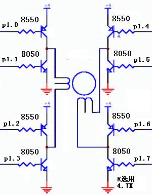;K1驱动步进电机顺时针转动,K2驱动步进电机逆时针转动