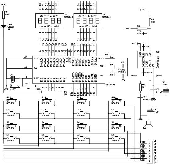 (1). 4×4行列式键盘识别技术:有关这方面内容前面已经讨论过,这里不再重复。