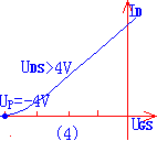 转移特性曲线:  我们根据这个特性关系可得出它的特性曲线如图(4)所示。它描述了栅、源之间电压对漏极电流的控制作用。