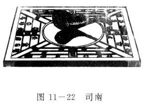 最早的指南仪叫司南。公元1世纪东汉学者王充在《论衡》中对司南做了比较具体的描述图。11-22所示的是按古代记我仿制的模型。司南是用天然磁石琢磨而成的句子,放在刻有方位的铜盘上,可以转动,当它静止时、勺柄指南。但是,由于摩擦阻力,司南的准确性较差。